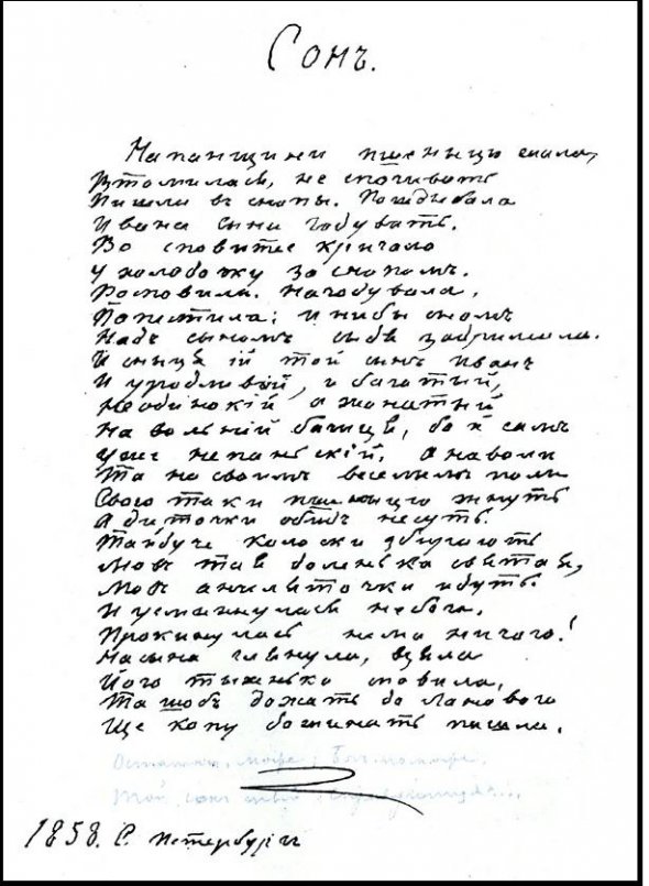 Taras Shevchenko Poema Son U Vsyakogo Svoya Dolya Mala Storinka